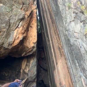 スタッフのお兄ちゃんたちがカヌーを漕いで、あちらこちらを案内してくれます。どこだったかな?上を見ろ!と言われ、見るとの形に抜けていて