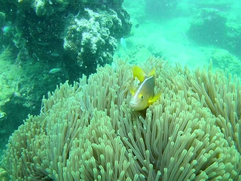 10分くらいして少し慣れ、水の中の様子も見れるようになった。朝の土砂降りからは想像もつかないような海の透明度。子供たちがニモの世界みたいだったと言ったその通りに私も感じた。