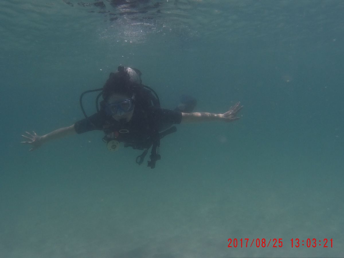 雨が降っていて透明度は低かったのですが、インストラクターさんがとても丁寧に教えてくださり、安心してダイビングすることができました(*^^*)