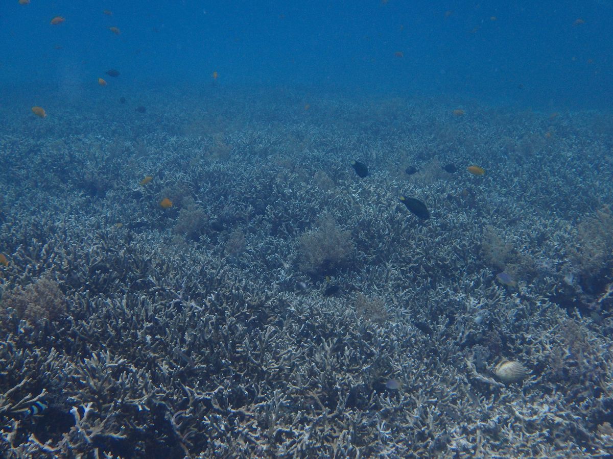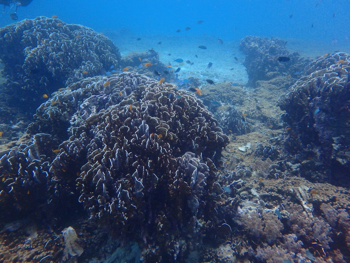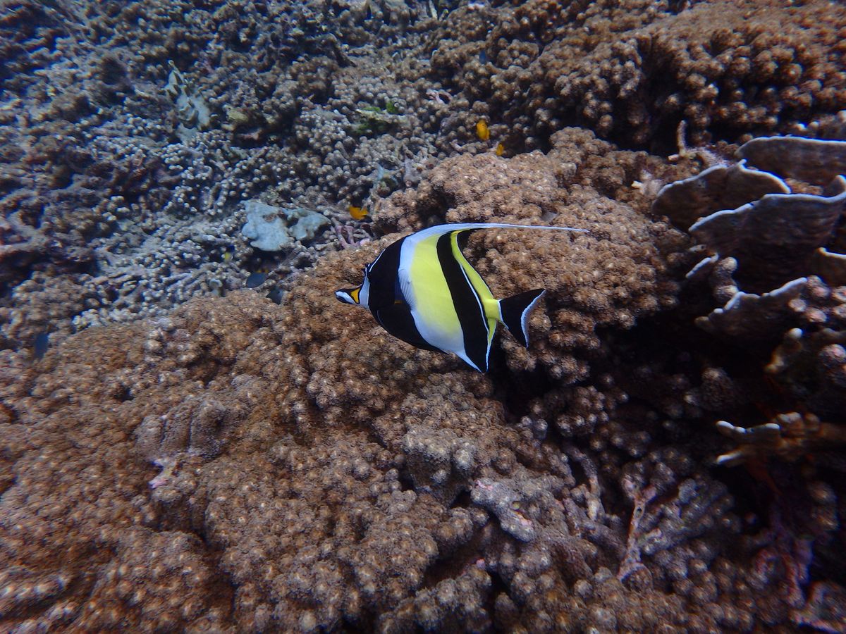 海底を散策した後、サンゴに隠れた何かを一生懸命食べていました。