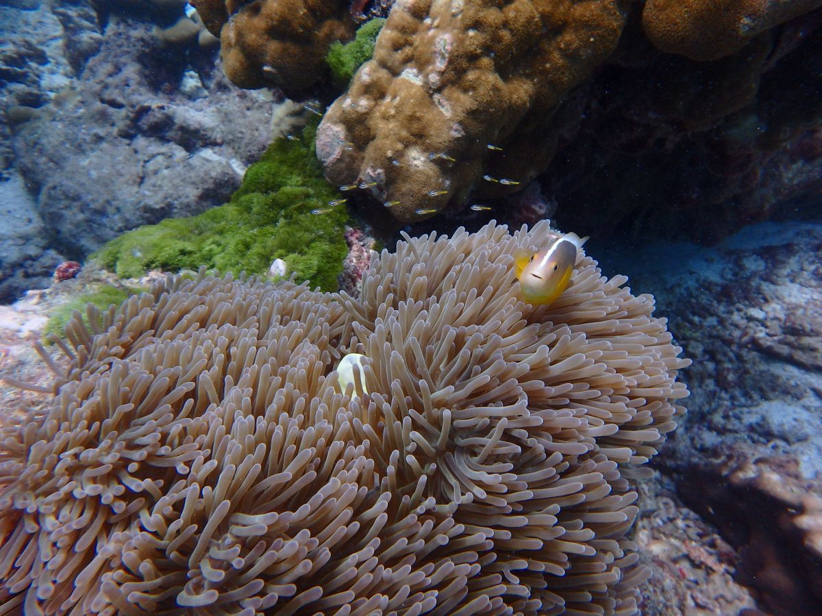 海はごくきれいで、間近でクマノミを見ることが出来たり、たくさんの魚の群れに遭遇することが出来ました。