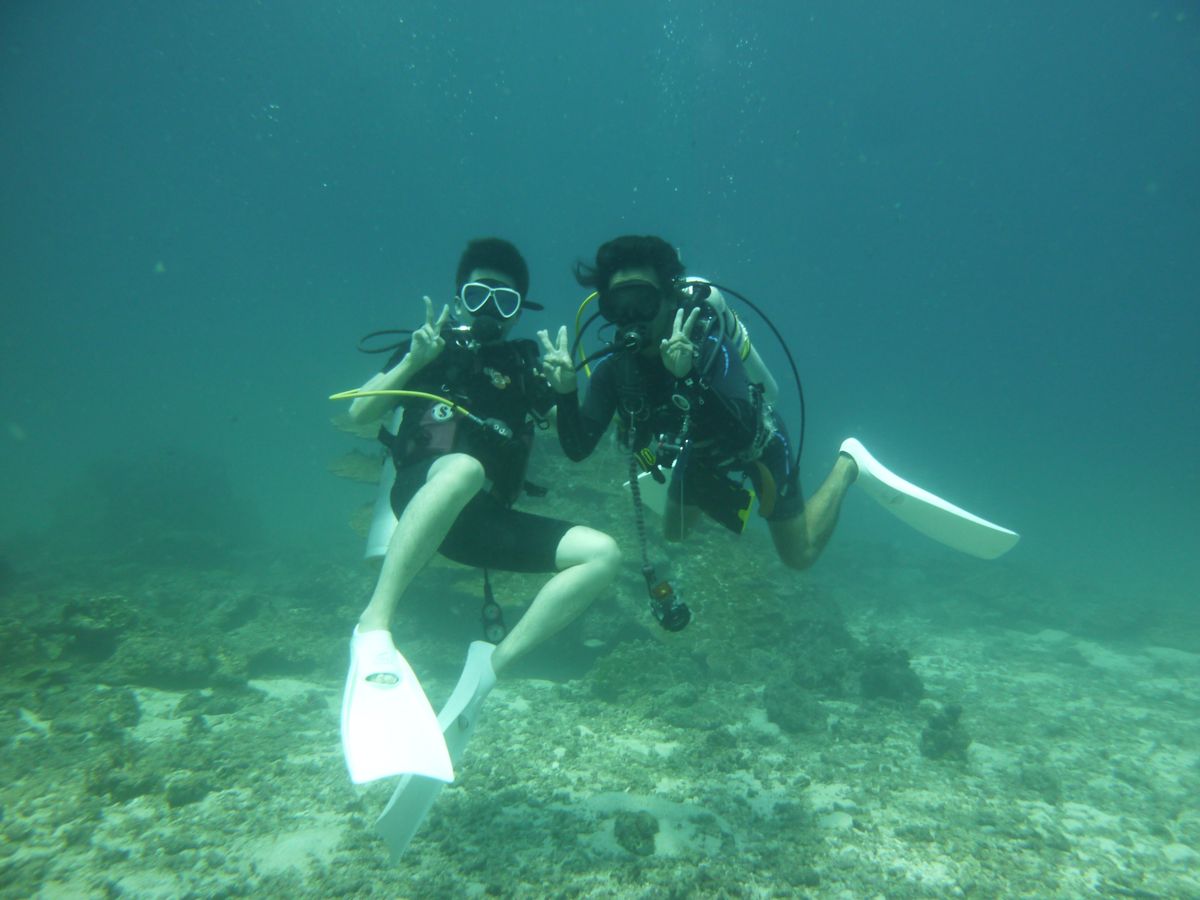 初めてのダイビングで緊張していましたが、インストラクターのタケシさんがとっても楽しい人で、丁寧に教えて頂けたので、すぐに緊張はなくなり楽しむことが出来ました。