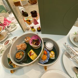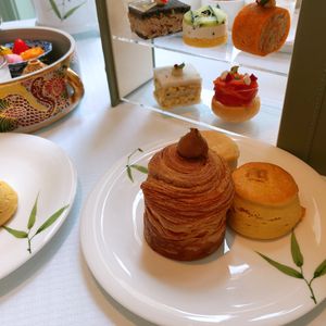 ウエスタンスタイルのアフタヌーンティーを注文しましたが、それがとても可愛かったです。本型のケースから、ケーキたちが出てきて可愛すぎました。ケーキもどれも一つ一つ手がこんでいる味で贅沢でした。スコーンも美味しかったです。マンゴー味のスコーンは、マンゴーがごろごろ入っていました、、、!