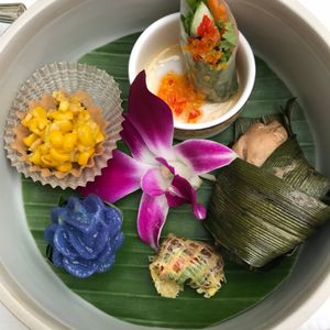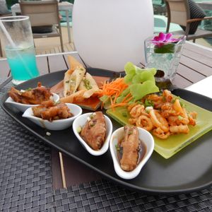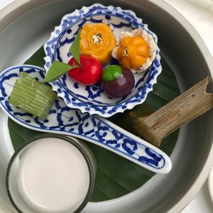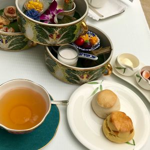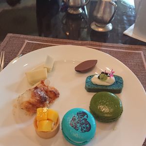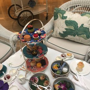 西洋風とアジアン風の二種類あり、それぞれ頼み二人でお互いシェアしましたが、どちらもタイっぽさがあるアフタヌーンティーでした。純なイギリス風とは違いますが、とても洗練された料理とスイーツでした。紅茶はTWG で、オリジナルティーはホテルの名前が付きタイチックな料理に合う味と香りでした。ギターの生演奏も良かったです。
