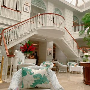 対岸のホテルに宿泊していたので、そこからホテル専用のボートでマンダリンオリエンタルホテルの船着き場へ直行しました。中庭を抜け素敵な洋館へ入りその場に居たホテルスタッフに予約券を渡すとすぐにお席まで案内してもらえました。お席はオーサーズラウンジのあの階段を目の前に見ることができるお席でとても気に入りました。15時前後のお時間でしたが、日本人のグループの方が多かったように思えます。サービスもきちんとしていて、終始ゆったりした優雅な時間を過ごせました。サンドイッチ類のおかわりもしました。ロンドンでアフタヌーンティーを頂く機会が多いのですが、ロンドンでのサンドイッチ→スコーン→ケーキ類の順番でいただくのと違い、こちらでは、スコーンからスタートするようでした。ロンドンではサンドイッチを食べ終えた頃にホカホカのスコーンを持って来てもらい、頂くことが多いのですがこちらでは最初からホカホカのスコーンが三段皿の一番下にのって出てくるので、まずは温かいうちにスコーンからということのようです。スコーン自体のお味はかなりのレベルだと思いました。とても美味しかったです。アフタヌーンティーを頂く時はランチは抜いて行くのですが、それで丁度いいと思います。食後にメインロビーへ行って、お花等の装飾が美しかったので写真を撮っていたら、ホテルスタッフの方が声を掛けてくださり、私達の写真を撮ってくださいました。ホテル内の雰囲気、スタッフのサービス共にさすが超一流のホテルでした。また、訪れてみたいホテルです。