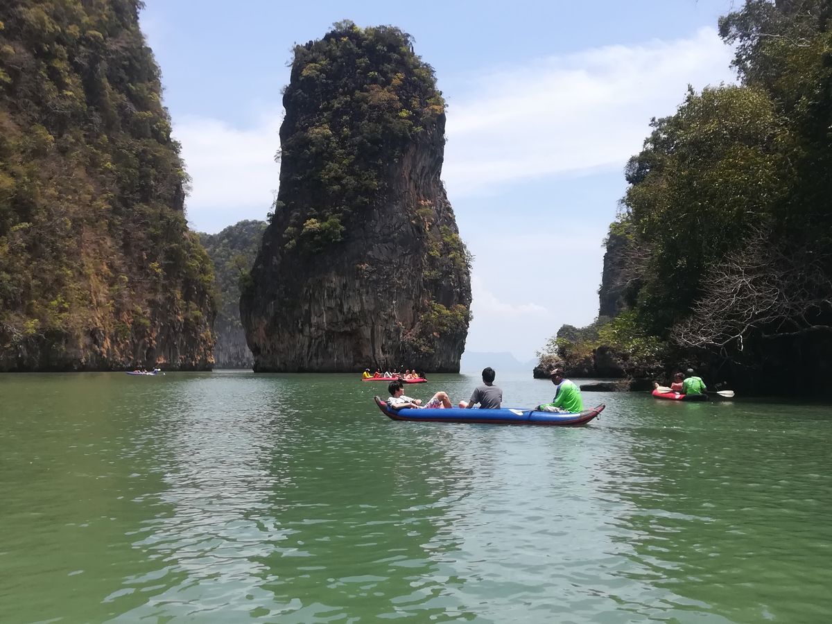 HONG ISLAND:カヌー体験にて、ユーモアあふれる漕ぎ手ガイドさんが景色の説明を英語でしながら案内してくれました。自分でパドルを漕ぐ体験もさせてもらい、シーカヌー体験および海と岩の景色、どちらも楽しめてとてもおもしろかったです。チップは参加者1人あたり20バーツ渡しました。
