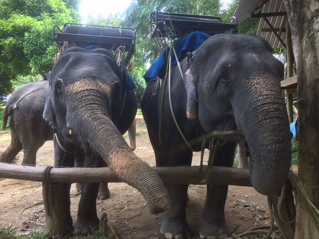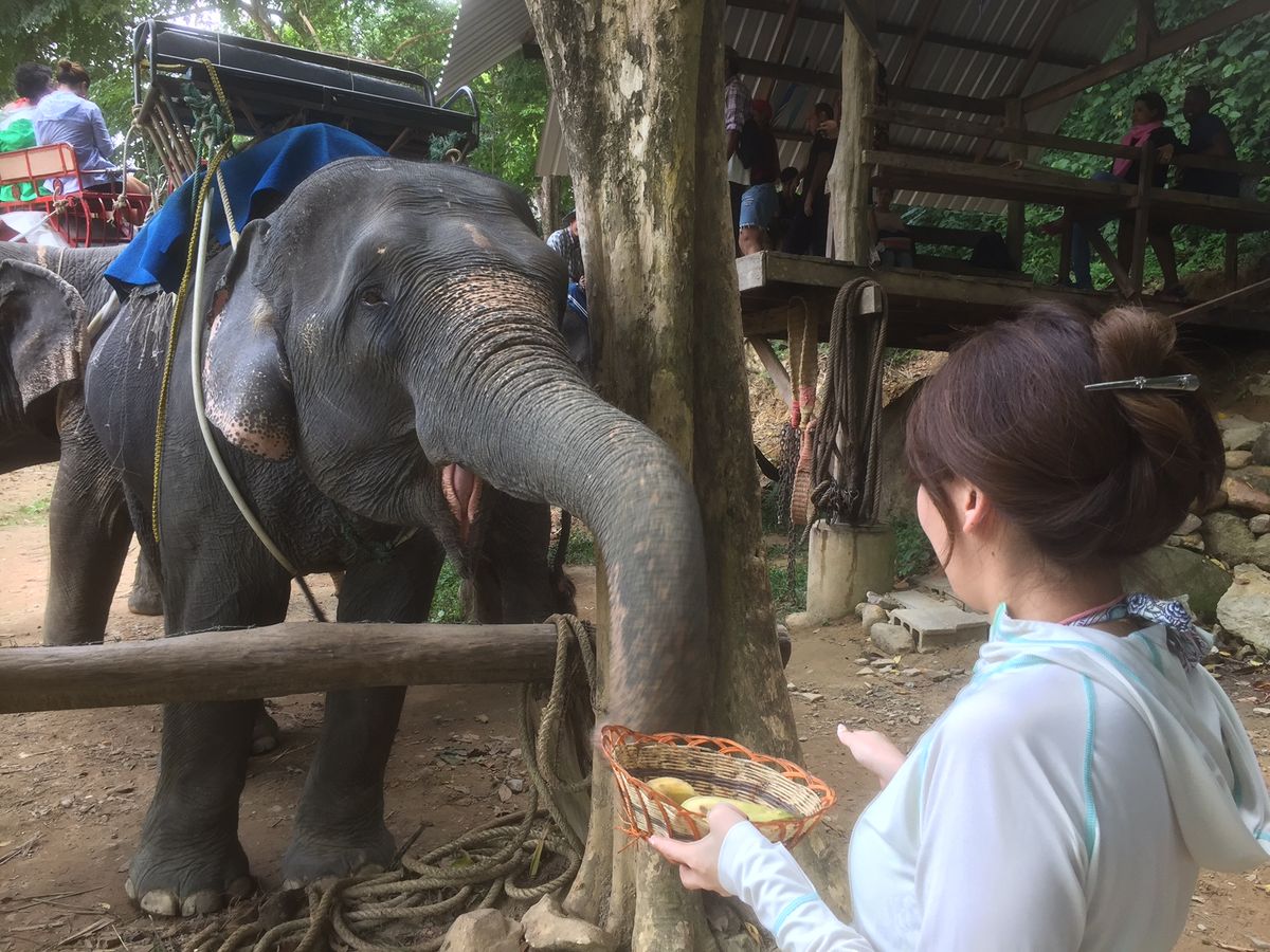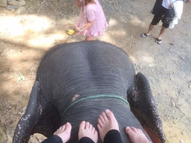 まず初めに象乗りをしましたが、象使いの方がサービス精神旺盛で写真もたくさん撮ってくださいました。象もおとなしくて目が優しくてかわいかったです。象の頭の上に直に座れて頭に毛があるのを知りました!