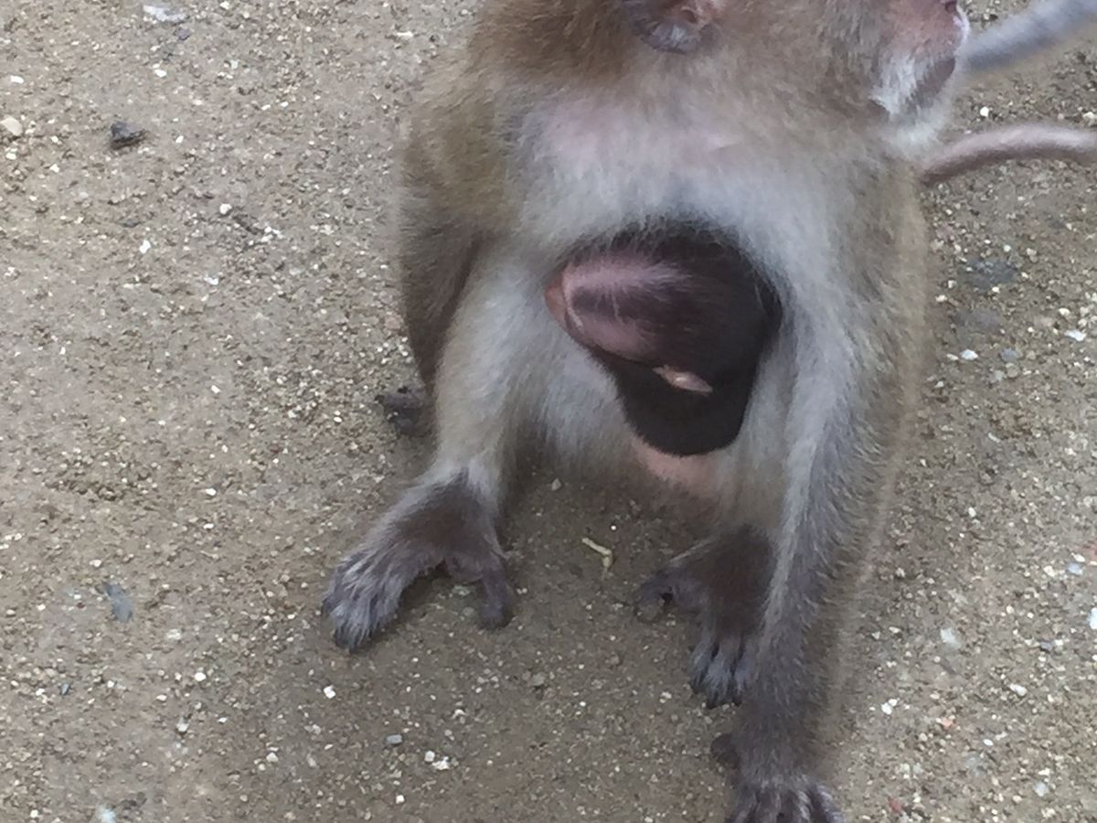 シャワーをして、車でおサルさんのいるお寺へ!想像以上に人に慣れていて、たくさんのサルがいてました。子ザルをだっこしているサルもいて癒されました。