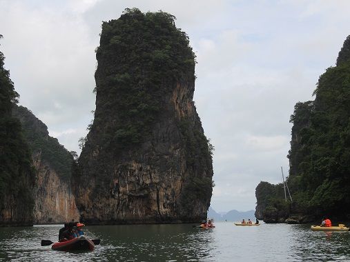 パンガー湾ツアーの目玉の1つは、やはりカヌー体験ですよね。カヌーに乗って見るパンガー湾の景色や、頭ギリギリの鍾乳洞などを潜り抜けるアドベンチャーは、なかなか体験できない思い出になります。また、水上村は、まさにお客様のおっしゃるとおり海の上ということを忘れてしまうくらいの町が形成されていますので、見る価値があるかと存じます。