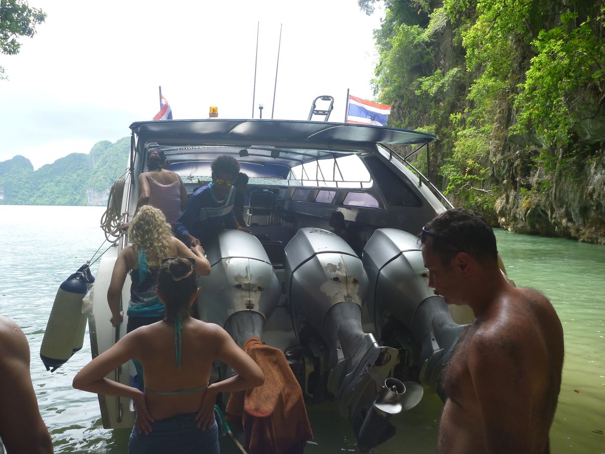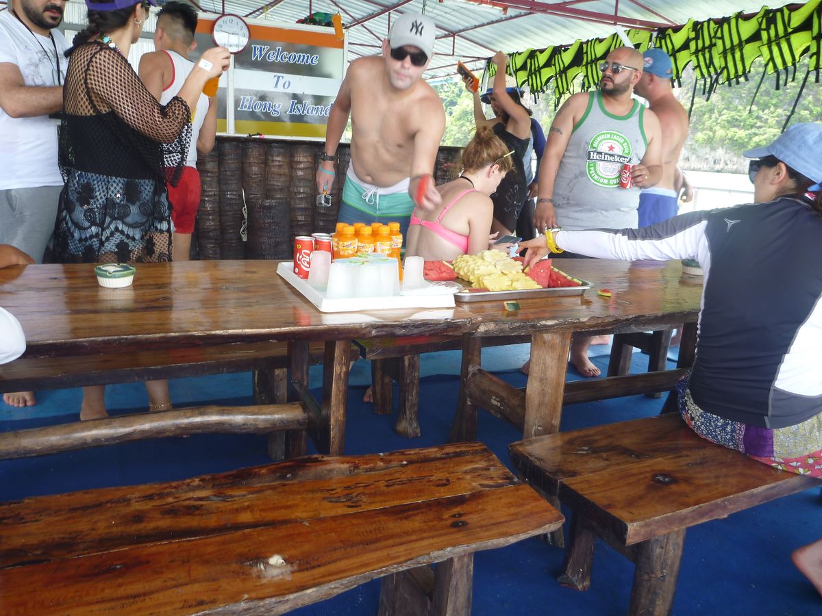 スピードボート内では、フリードリンク(水、コーラ、オレンジジュース)で、好きな時に好きなだけ飲んでも良かったのですが、中近東の人は飲み終わった缶をパンガー湾に捨てていました。それを見た娘はとても不愉快だったと言っています。