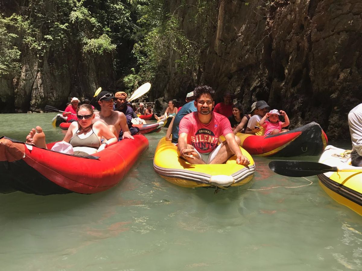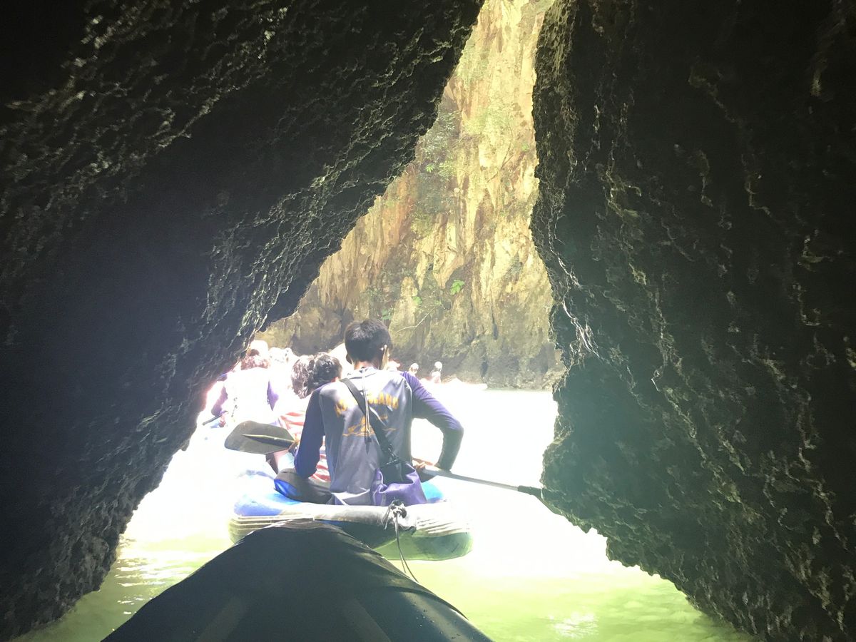 雨季なのに抜けるような青空と、うだるような暑さだったけど、次々に現れるイベントに心を躍らせました。まず、スピードボートで走り出した途端の興奮!波の上をジャンプするような走りがとてもワクワクしました。カヌーを漕いでくれたイケメンで優しいお兄さん!とても素敵でした。言葉で意思疎通できたらとても楽しいのにと。でも、指をさしていろいろ教えてくれ、楽しかったです。洞窟探検も楽しくて、洞窟をくぐった後に広かったジャングルは、最高のご褒美でした。ヘルメットを貸してもらえたので、安心でした。すれ違ったグループは、ヘルメットがなかったので、頭をぶつけていて、このツアーにして本当に良かったです。最後の島も海がものすごく綺麗で、砂が白くサラサラで、日本とは違う海水浴が楽しめました。口コミにあるように、キャッチがすごいので、敷くものを持って行って正解でした。絶対思い出深い最高の一日が過ごせます!参加して本当に良かった!おすすめです!