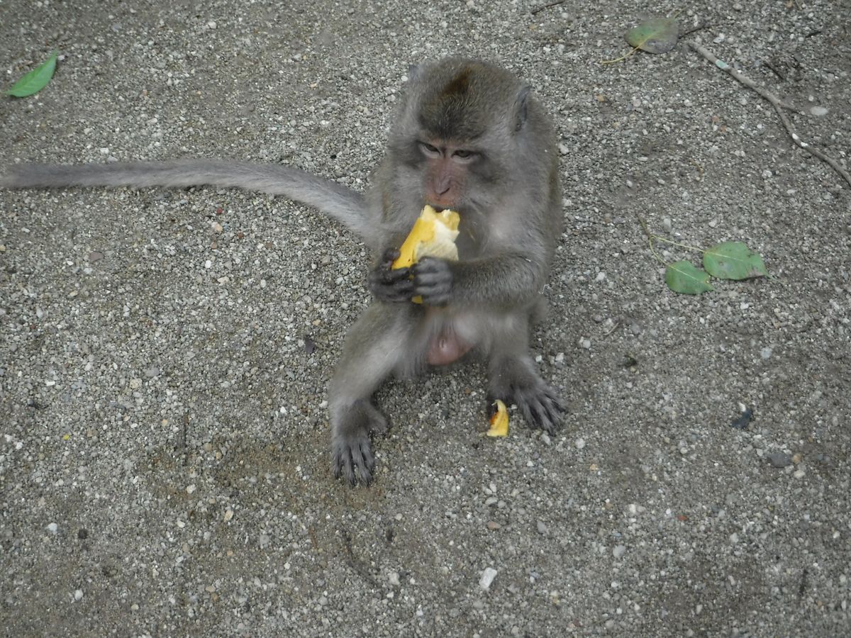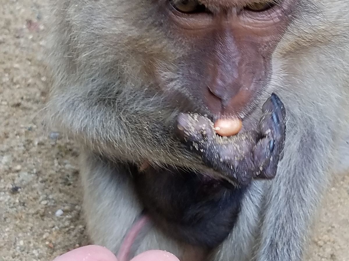 餌をやると、たくさんのサルとハトが寄ってきて、ぼやっとしてると餌の入った袋を奪われてしまいました。直接手から食べてくれて、怖かったけれど、すごくかわいかったです。