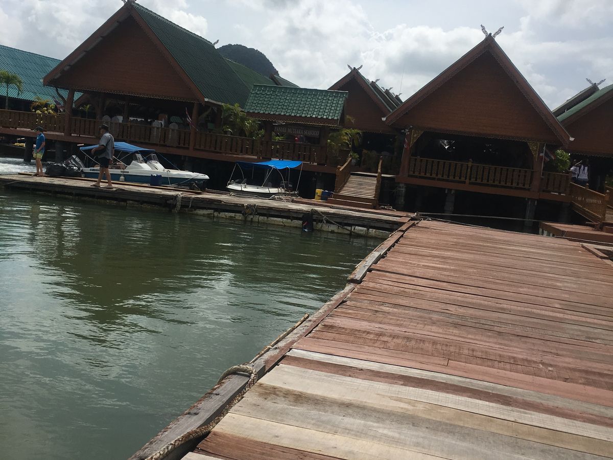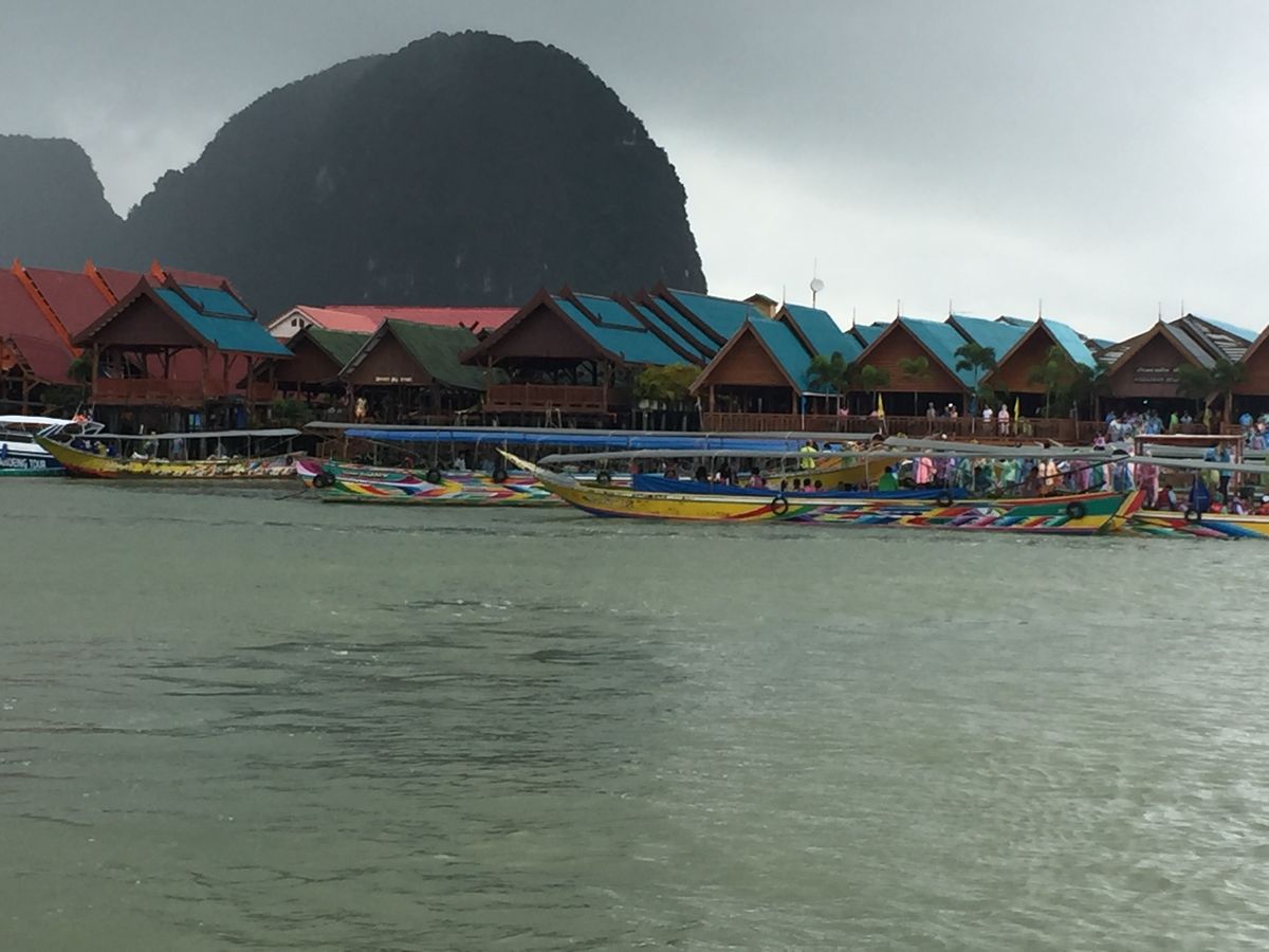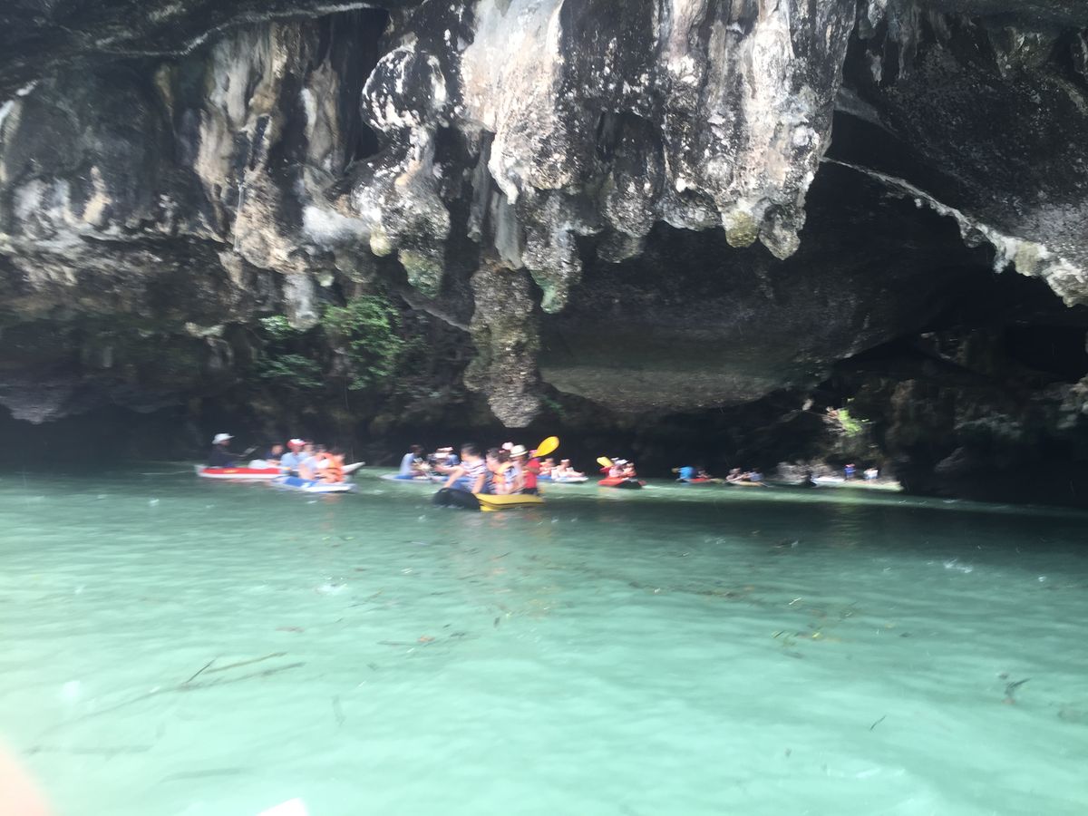 まず40分間位でパナック島に到着、歩いて行ける洞窟探検 で鍾乳洞を歩いて散策しました。それから10分位でホン島でシーカヌー(船頭+2人)体験。洞窟もありスリル満点でした。(船頭に1人50THBチップ) そこから約20分ピンカン島(別名ジェームスボンド島)にも立ち寄りました。その後水上生活者の村、そこで昼食になります。味は個人的には中より下でした。お店もたくさんあったので買い物もできますがあまり時間はないです。
