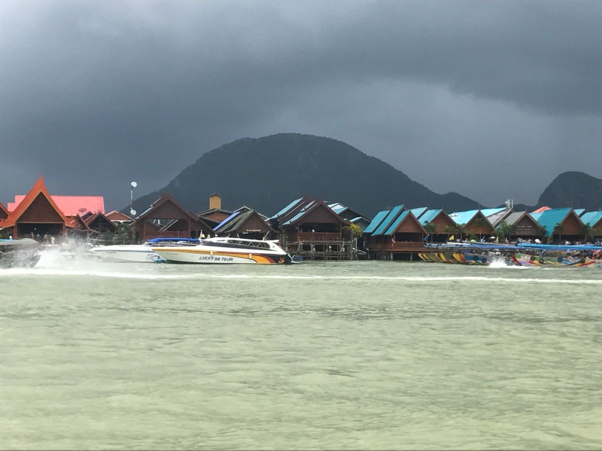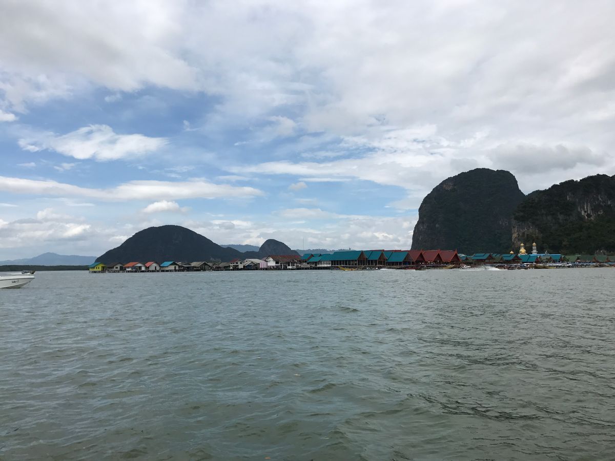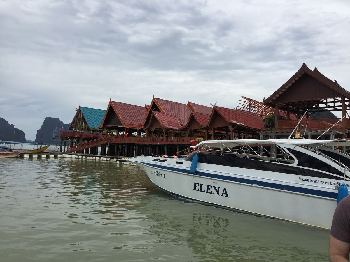 まず40分間位でパナック島に到着、歩いて行ける洞窟探検 で鍾乳洞を歩いて散策しました。それから10分位でホン島でシーカヌー(船頭+2人)体験。洞窟もありスリル満点でした。(船頭に1人50THBチップ) そこから約20分ピンカン島(別名ジェームスボンド島)にも立ち寄りました。その後水上生活者の村、そこで昼食になります。味は個人的には中より下でした。お店もたくさんあったので買い物もできますがあまり時間はないです。