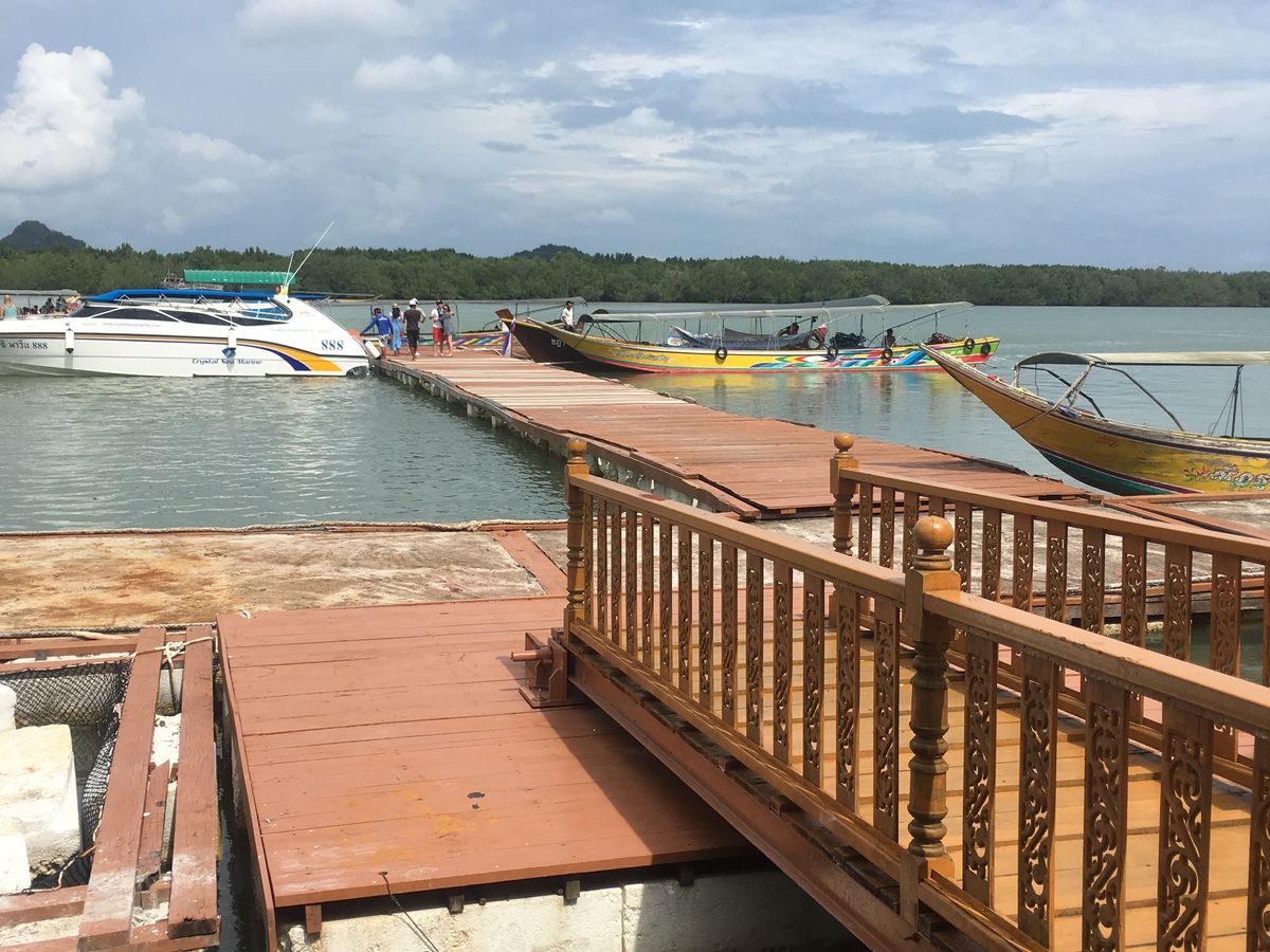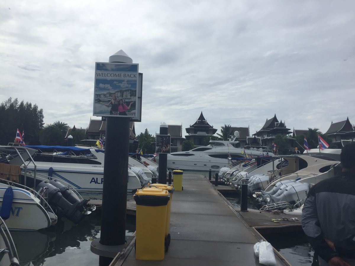 プーケット滞在2日目のアクテビティとして参加しました。朝9時過ぎにホテルまで送迎のワゴンバスが来て、数軒のホテルを回り他の参加者の方々と合流した後、ボートピアに向かいました。