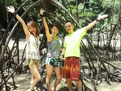 洞窟探索では腰~胸のあたりまで海に浸かりながら歩いていくので、水着になるようにとの指示がありました。洞窟を抜けてマングローブに囲まれたラグーンの景色は圧巻です。冒険映画に出てくるような場所でした。
