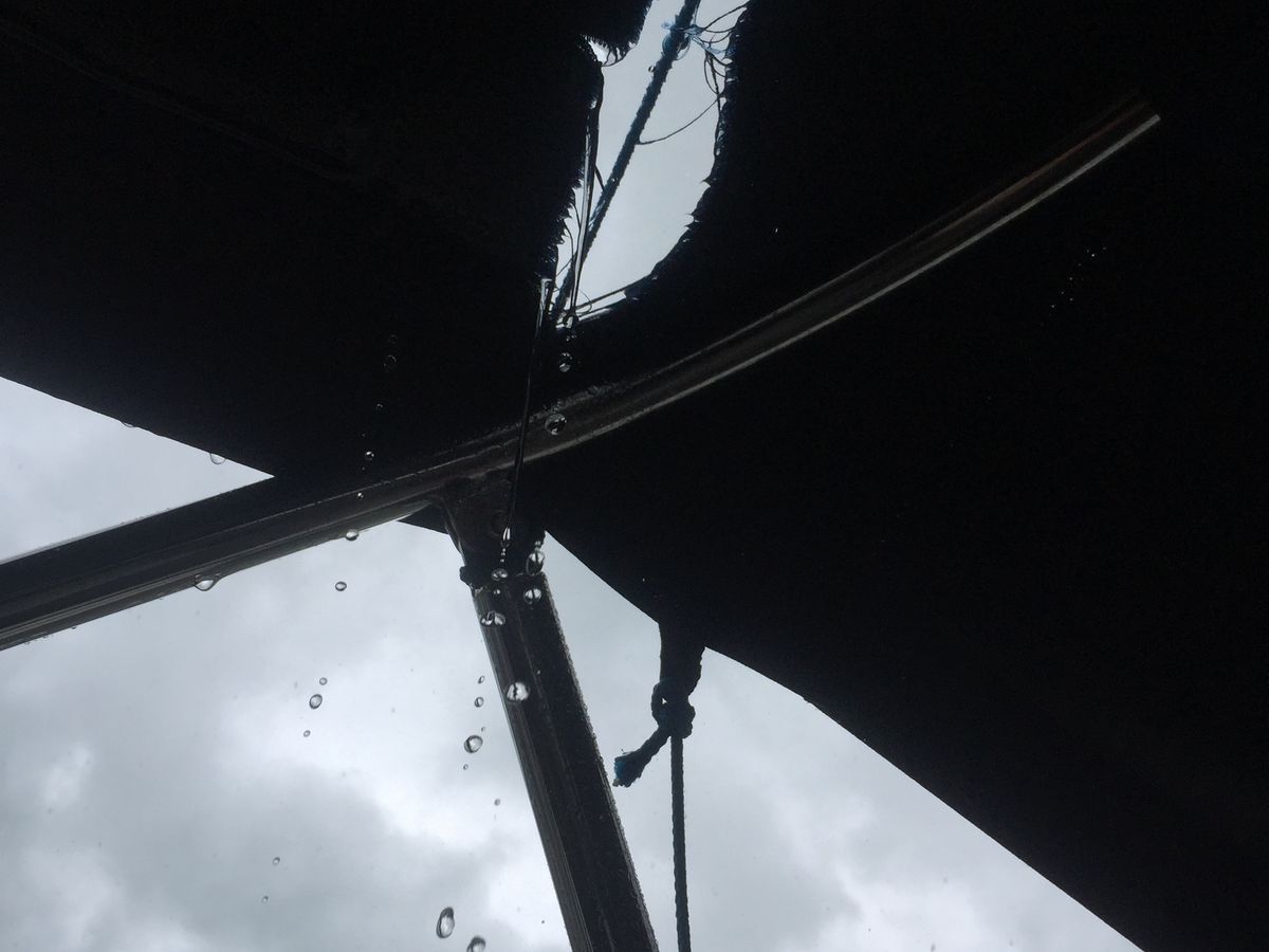 天上には屋根がありますが、破れているため、大粒の激しい雨で終始びしょ濡れで寒かったです。