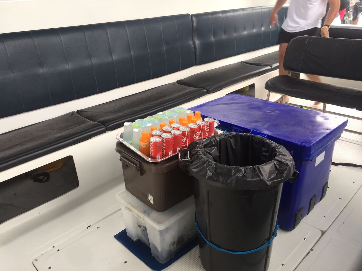 島巡りをするスピードボート内には、冷たい水やコーラがたくさん用意されていて、一日中いくつでもフリーです。そのほかにも、合間合間にスイカやパイナップルなど切り分けて配ってくれます。