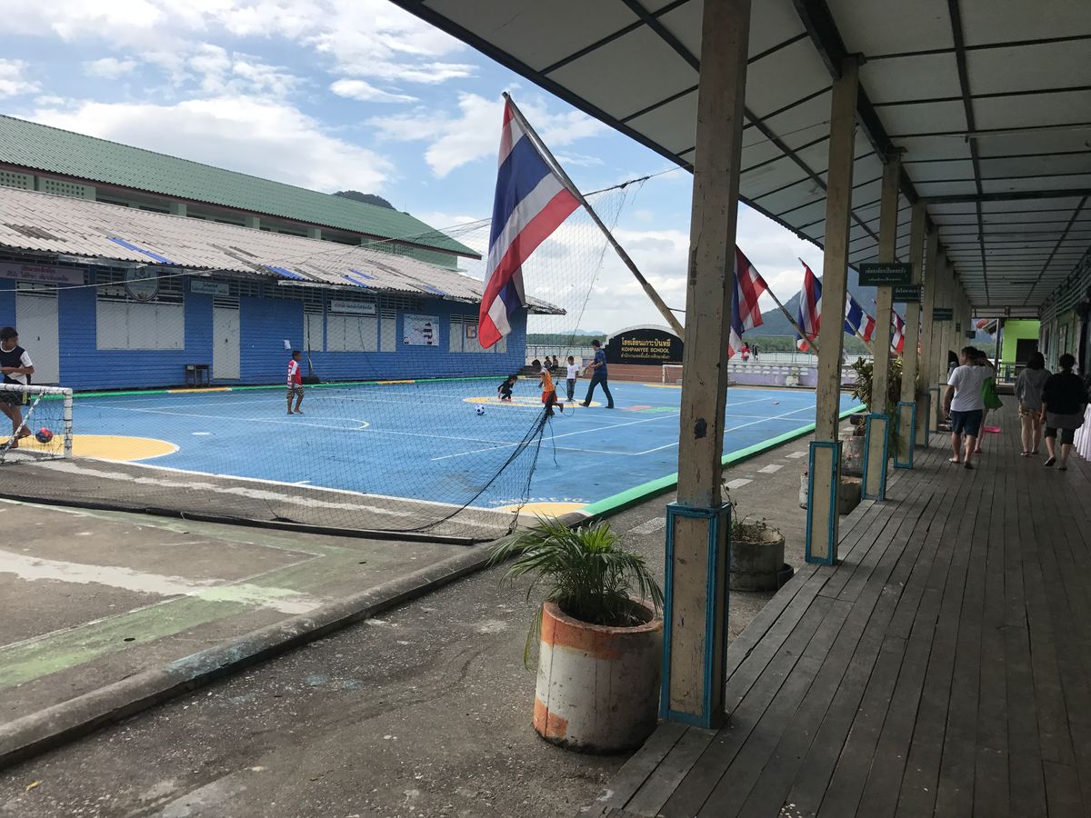 最初にPANAK島に上陸。懐中電灯を渡され真っ暗な洞窟を進んで行くとマングローブの群生する陸地に到着。洞窟は深い所は膝上までありました。水は暖かいです。次にHONG島ホン島のホンはお部屋のことだそうです。ここでカヌー体験でした。頭を下げないとぶつかりそうな岩の下をくぐりぬけ奇岩を眺めました。カヌーを漕いでくれた人にチップを2人で100バーツという事で渡しました。ガイドは最初に渡した方が一生懸命やってくれると言うので真っ先に渡しました。そのせいか写真を撮ってくれたり亀や象や鳥に見える奇岩もよく教えてくれました。私達の船頭は15才の男の子でした。それこらPANYEE島へ。ここはマレーシア人が移住して作った水上の町です。ここでランチビュッフェです。この町にはモスクも銀行も学校もありました。