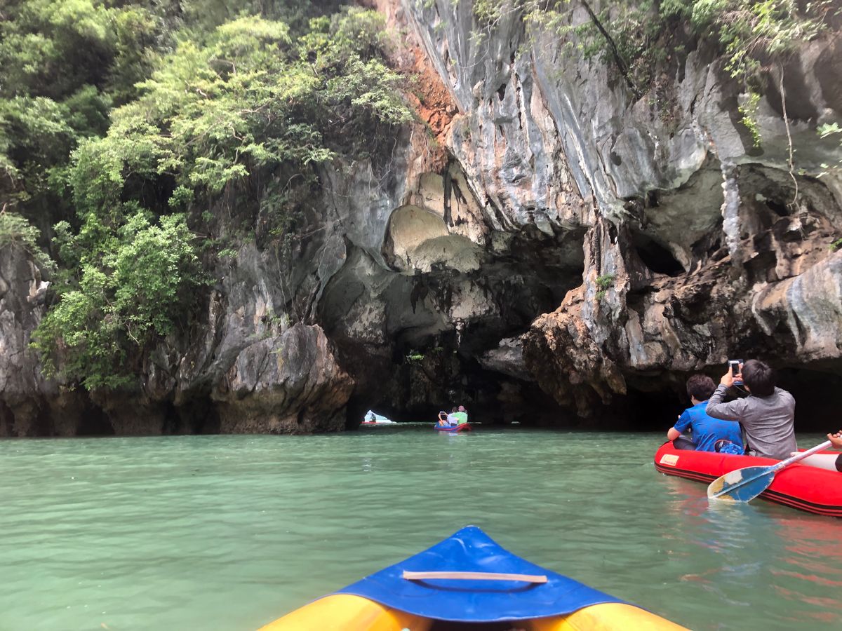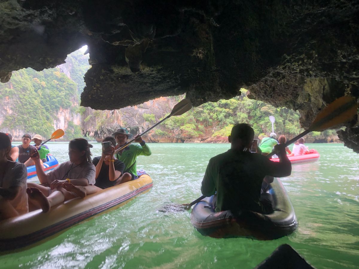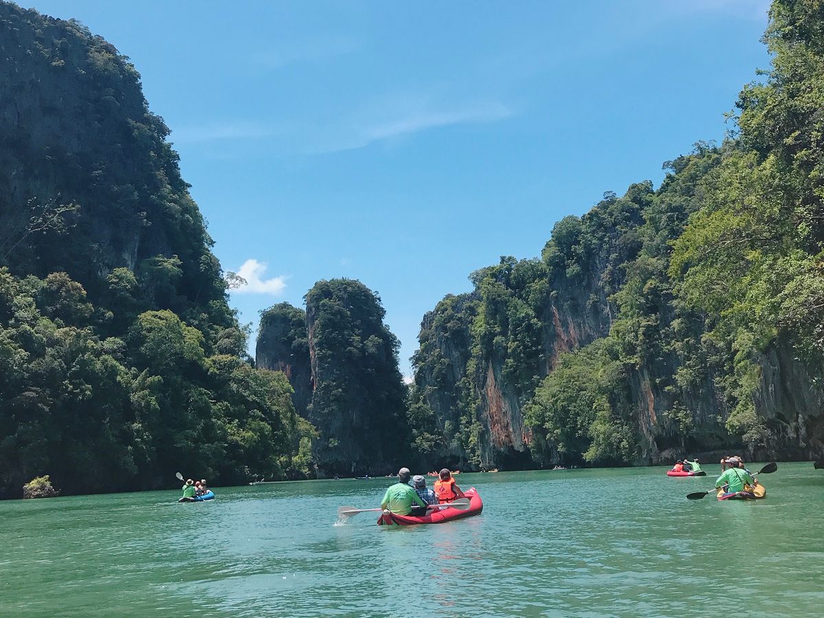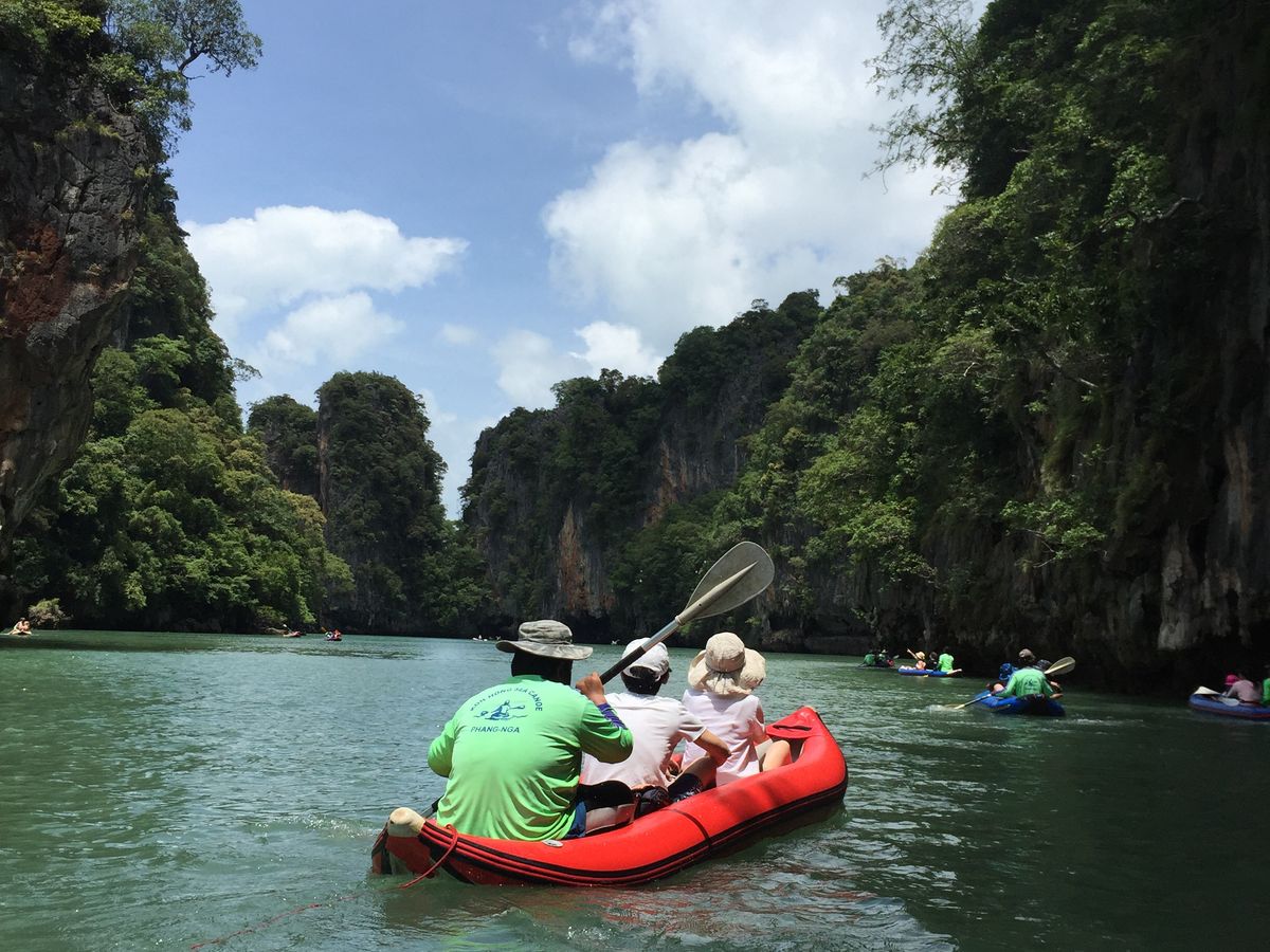 親子で参加させていただきました。当日は日本人は私達だけで、ボートでは一番前の2人席に座らせてもらったり、各現地ツアーも優先的に行かせてもらえました。吹き抜けの食堂で食事の時に大雨が降りだしたエピソードがあったのですが、事前に「ここの席なら雨にも濡れないし、外にも近いし、食事も取りに行きやすいよ」と親切な対応していただきました。ツアーは異文化や大地を感じさせてくれます。鍾乳洞では鍾乳石から落ちる水を飲ませていただきました。長い年月をかけて作られたアイスクリームという鍾乳石、凄かったです。カヌーでは自然が作り出す形の中で動物柄を探しだしたりと童心に戻ります。ジェームスボンド島、その風景に圧巻です!でも、お楽しみはジェームスボンド島が見える裏にあります!大きな岩盤が重なり人の文字になっています。タイの方にはこっちのが人気あるんだよと説明いただきました。水上村は異文化すぎて海外来た!という思いにさせてくれます。ご飯も美味しい!