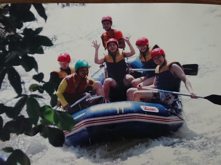 象乗りの後はランチで、ランチの後は滝つぼへ行きました。水が冷たかったので滝つぼで遊んでる人はいませんでした。滝つぼから戻った後はいよいよラフティングです。私たちのツアーは船漕ぎさんと一緒にオールを持って漕ぎました。最初は怖かったけど、すごく楽しかったです!船漕ぎさんがわざと岩にぶつかったり、ボートを揺らしたりしてキャーキャー言いながら川を下りました。周りに他のツアーのボートがたくさんいて、他のボートの船漕ぎさんから水をかけられたりしてビショビショに濡れます。5キロの人も9キロの人も同じボートに乗ります。5キロの人は途中でボートを降りて、9キロの人はさらに4キロを下ります。私たちは9キロにして良かったです。5キロだと、いいところで終わりなので、もっと乗りたいと思うでしょう。それぐらいスリリングで楽しいです!とてもオススメのツアーです。