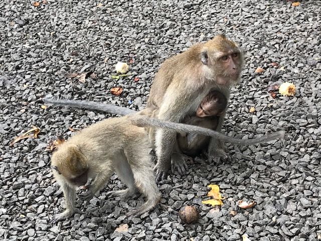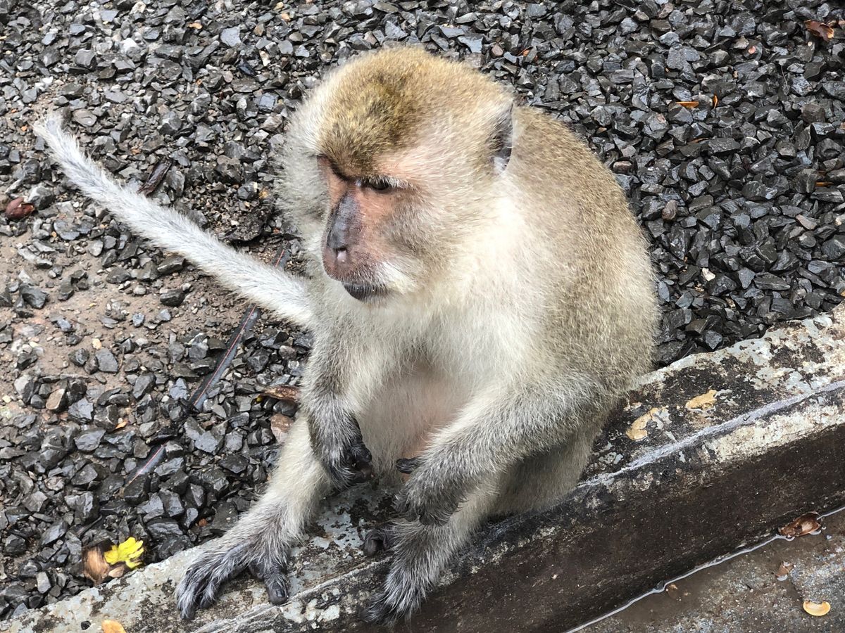 7:30ホテルピックアップだったのですが迎えに来たのが8:15でいきなり心配になりました。他のグループを迎えに行く途中でドライバーが道に迷って寺院に行くのが大幅に遅れましたが何とか無事に着きました。寺院は有料だったので私は中には入らず、猿がいる広場みたいなところへ行きました。近くの売店で50バーツで、とうもろこしやバナナ、ジャガイモがたくさん入った餌を買って、猿にあげることができます。餌を持っているとジリジリと猿が近寄ってきてちょっと怖かったけど楽しかったです。赤ちゃん猿もたくさんいて可愛かったです。