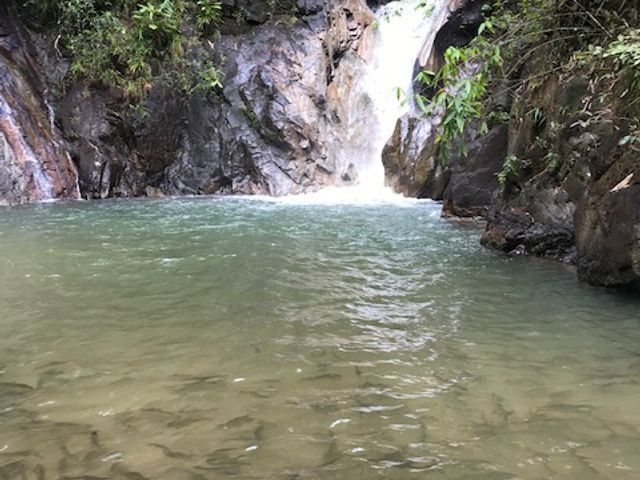 昼食後そこそこ移動時間をかけて行きましたが、あまり大きな滝ではなかったです。また、養殖用と思われる魚が大量にいるので、泳ぐのは躊躇します。