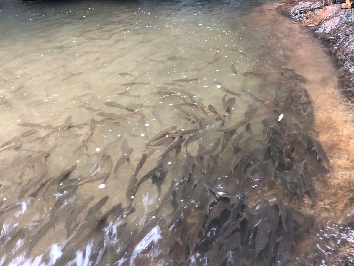 滝つぼはコイのような魚がたくさんいて、少し気持ち悪いですが、それが盛り上がりますwww