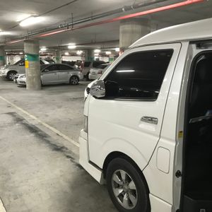 HP上での説明ではその方はただの案内係とのことでしたが、どうやらその方がドライバーで荷物を持ってくださり、歩いて約5分弱の立体駐車場まで向かい、そこでミニバンに乗り込みました。ミニバンは日本でいういわゆるハイエース的なバンでしたが、座席が革張り風で外観とは異なり高級感あるバンでした。