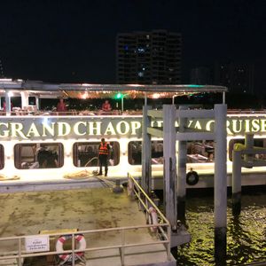 集合場所、集合時間が少しわかりにくかったですが、19:30頃からバンヤンツリーの受付台を持ってきて受付が始まりました。スパイシーはOKかと聞かれて、スパイシーでは無い物にしてもらいました。これが大正解でした。ほかのホテルで辛い物は少ししか食べられなかったので辛くないものにしてもらいました。さすがバイヤンツリーでした。タイで食べた料理では最高のおいしさでした。夜景も船で見ると最高です。写真も撮ってもらえるなど、サービスも良かったです。お客もほとんど日本人で、ほかのクルーズのようにうるさいことはなく、静かに料理を満喫できました。もう一度乗りたいと思いました。