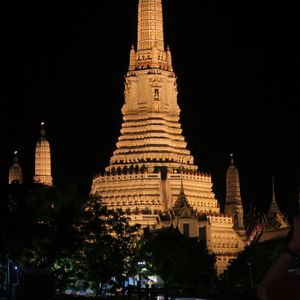 バンコクへ行ったら、半日市内観光の後に夜間のライトアップされたお寺を見るのが定番。バイキング料理も美味しく、さわやかな風にあたっての食事は最高です。