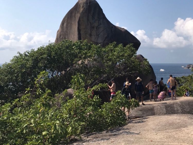 岩の上から海を見渡せる島、スノーケルポイント×2、10分くらいのお散歩コースのある島。海も浜もきれいです…が、とにかく人が多い…女の子達の自撮り撮影会になってます(笑)