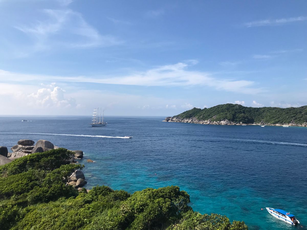 タイのシミラン諸島を人生で1番キレイな海と感じていただけたこと、大変誇りに思います。確かにプーケットから辿り着くまでの道のりは長いのですが、苦労して行った先には長い人生の中でもなかなか出遭えない絶景の島々と信じられないほど透明度が高い海が待っています。シミラン諸島は本当に時間をかけても行く価値がありますよね。水深が深くても海底が見渡せるほどの透明度と豊富な海洋生物。シュノーケリングはもちろんですが、じゅん。様からのオススメであるビューポイントからビーチを見下ろすと、停泊しているボートの影が海底に映るほどのクリスタルな海と、深いダークブルーのコントラストの美しさに息を呑みます。是非実際に体験していただきたいですね!