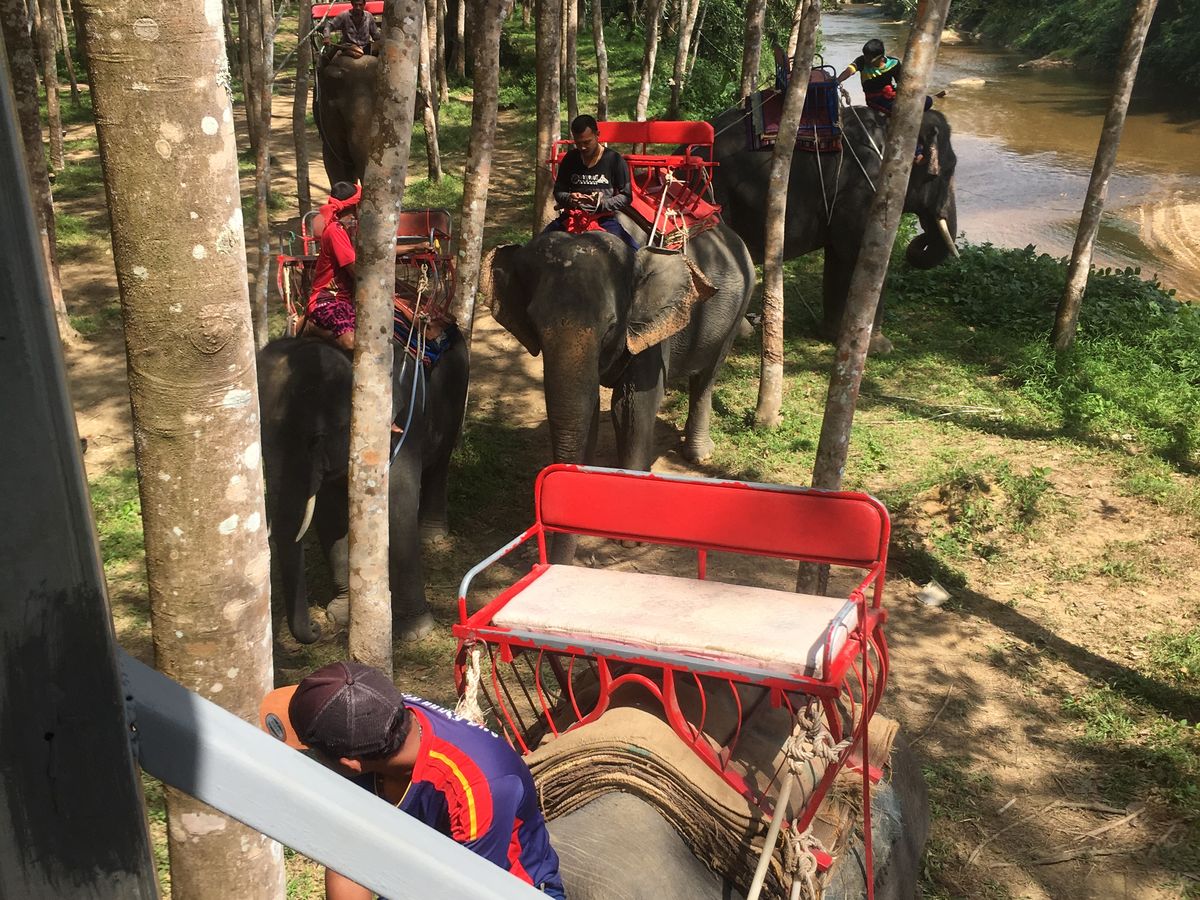 プーケットにもパンガーにも象乗り場は多くございますが、ここの象使いは象の頭の上にじかに乗せてくれたり、写真もたくさん撮ってくれたりするようです。