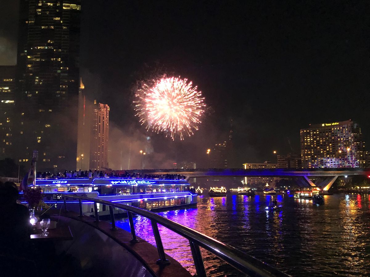 チャオプラヤー川から見るカウントダウン花火は圧巻。
