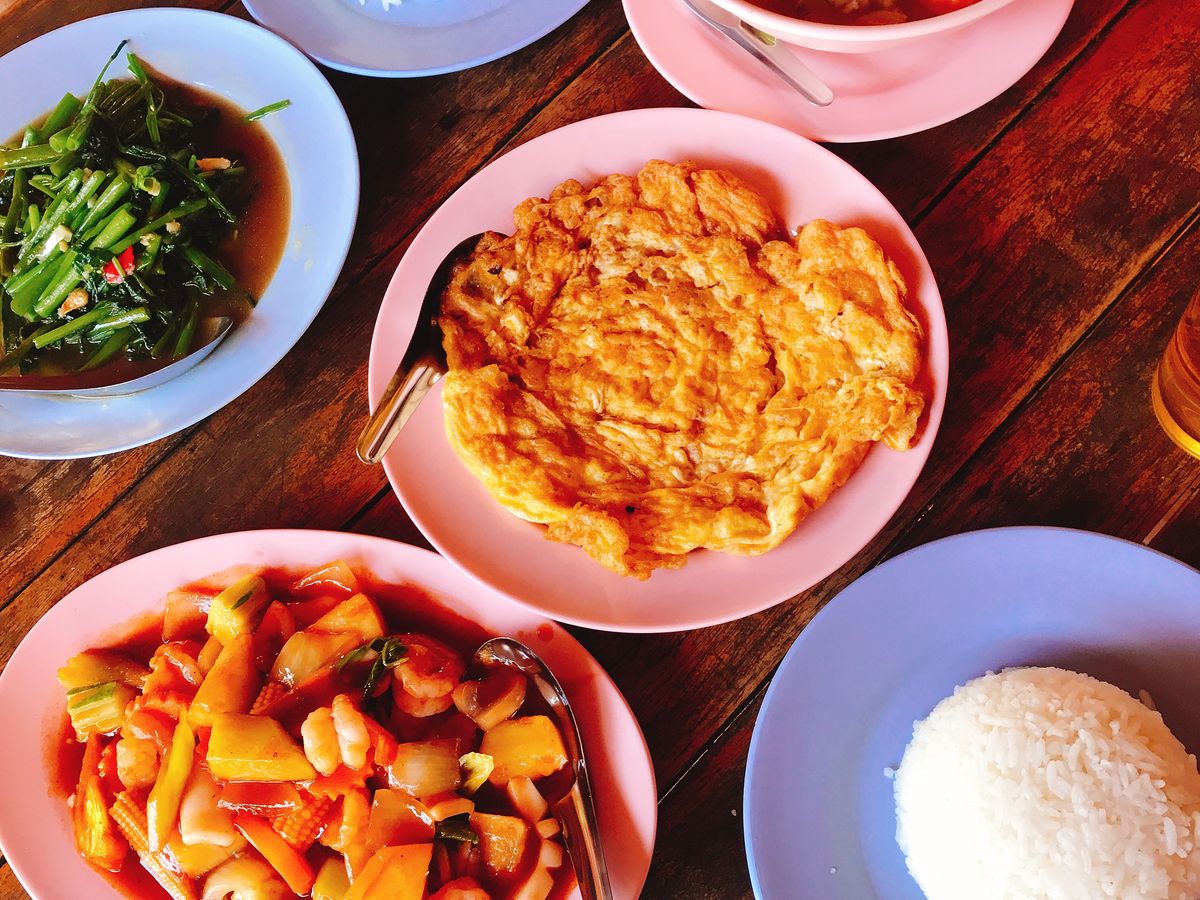 食事:タイ米とスープが一人ずつ、あとは二人でシェアする形でおかずが3皿、+フルーツがありました。女性二人でおかずは量も十分あり、少し残すほどでした。隣でご飯のおかわりを盛っていたので、おかわりもできるかもしれません。