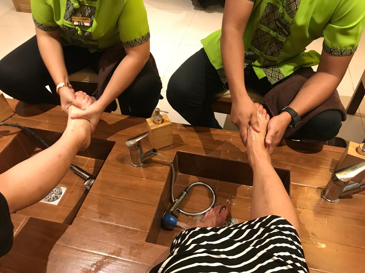 ただあちこち回って夕方ホテルに戻った時には身体は汗だくでももうチェックアウトしていて部屋のシャワーは使えないし... で、夕飯前に全身オイルマッサージへ。終了後 無料でシャワーも浴び放題(笑)