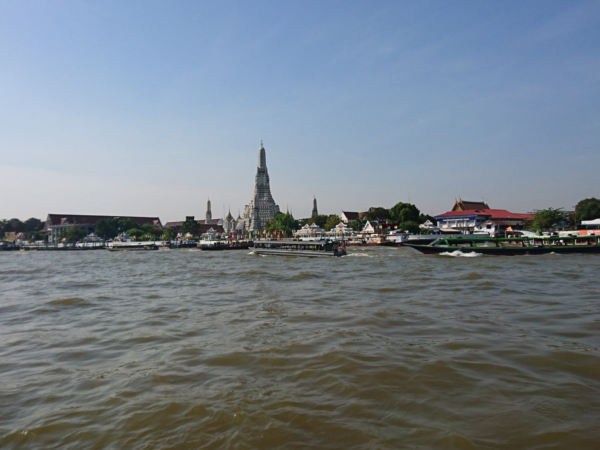 三大寺院は見事の一言。どこも比較的新しげであった。暁の寺からチャオプラヤ川を渡るが、この渡船がまだ風情があっていい。ただ、観光客が大変に多い。特にワットポーから、王宮、寝大仏は激混みで、縁日の参道状態。。