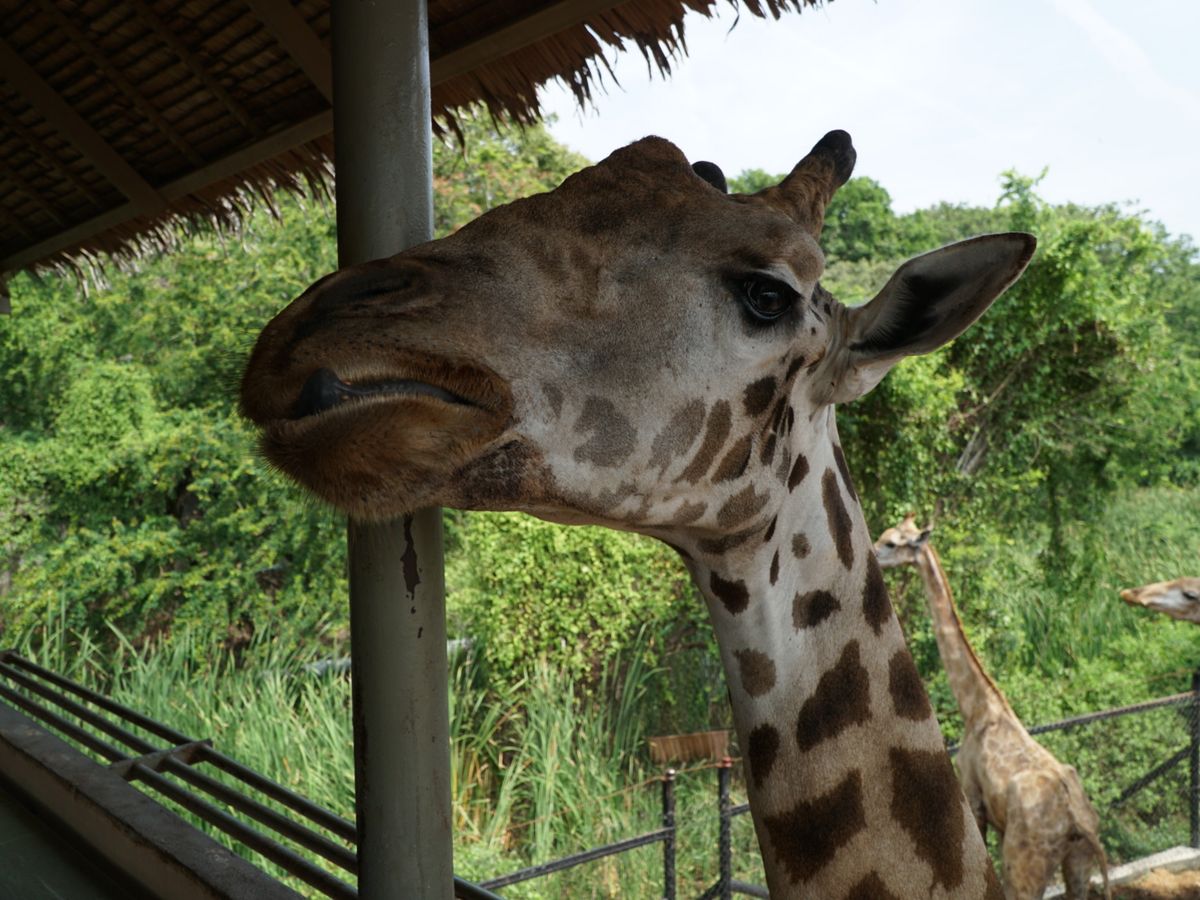 キリンの餌は1カゴ100バーツでバナナを棒にさしてあげます。楽しくて2回も行きました。