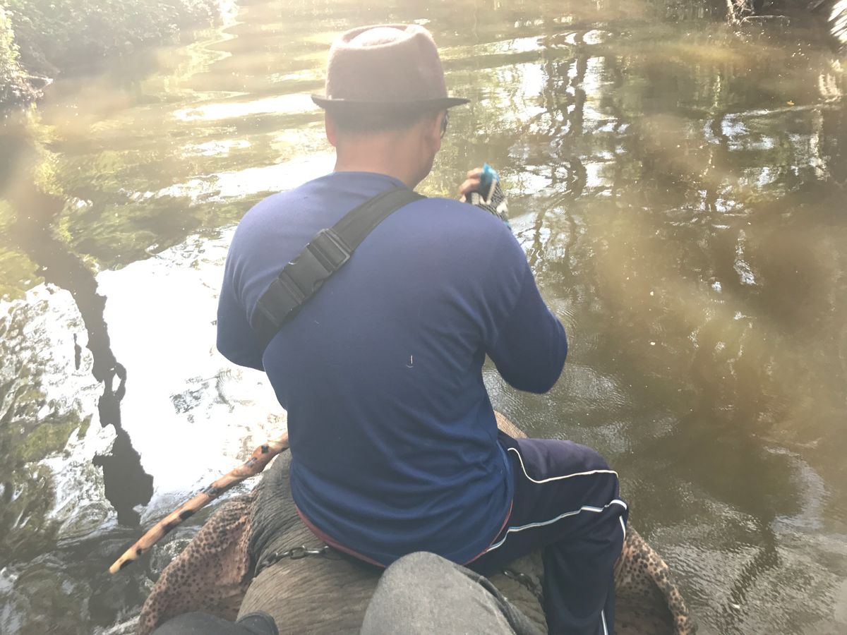 パムパムちゃんの背中に乗って、静かなジャングルの中を歩き、木洩れ日でキラキラと輝く川を渡り、とても幻想的なひととき。日本ではできない体験ですね。