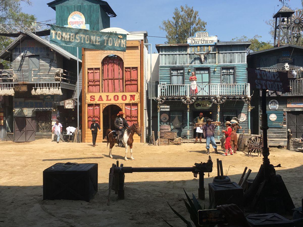 カウボーイショー、スパイウォーは銃や爆破シーンが多く、馬と羊がちょっとでてくるだけのかなりチープな感じでした。象のショーにすればよかったと思います。