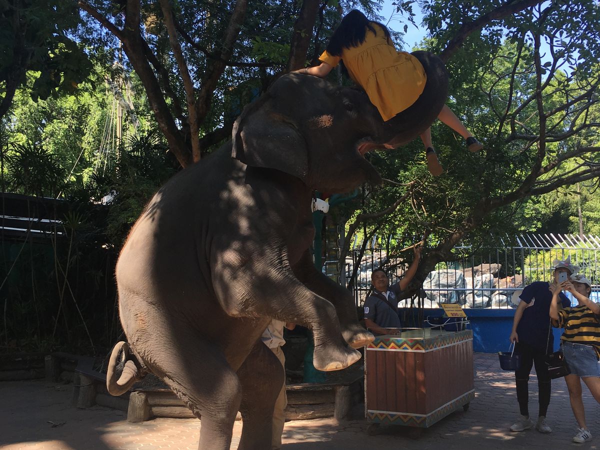 アユタヤでの象乗り体験とは全然違って時間も長いし、象使いのポジションに乗せてくれるし写真もたくさん撮ってくれて子供も大満足でした。