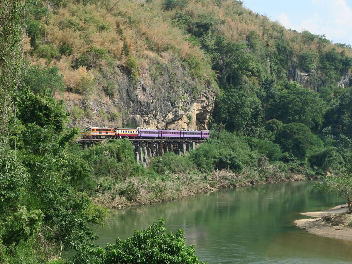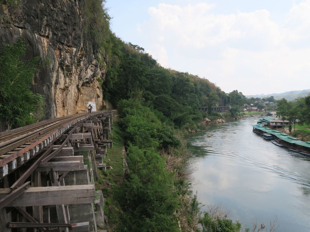 参加者が自分だけでなんとも贅沢なツアーでした。先にナコンパトムに行って、それからクウェー川鉄橋へ。戦争関係の博物館や施設をもう少し回れると良かった。クウェー川鉄橋ではたっぷり時間がありました。周辺にトイレも複数あります(チップ5パーツ)。泰緬鉄道は進行方向左側の良い席を取ってくれて、景色を満喫できました。発車後間もなく、冷えた飲料水とウエットタオルをもらえます。でも埃がすごいので自分でもウエットタオル持参すると良いです。ランチのビュッフェは品数少なめですがおいしかった。周辺に土産物屋が並んでます。帰りは一目散にバンコクを目指し、4時間強かかりました。