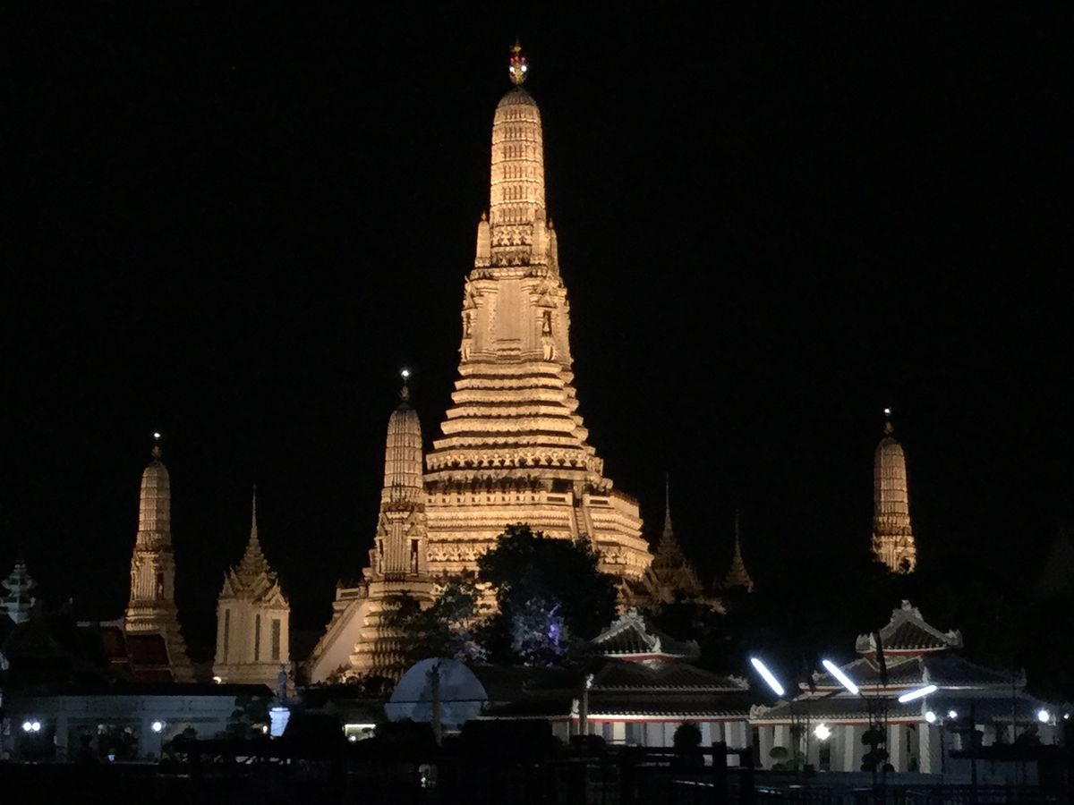 王宮観光は混雑が激しく(中国人が多い)はぐれないように注意が必要です。ディナークルーズは1階の席があてがわれ、外は窓越しにしか見えませんが、後から雨が降ってきてルーフトップの人達は避難を余儀なくされていたので室内で十分です。少し食べたら交代交代で船の後ろの方から景色を見たりできます。王宮や暁の寺もいいですが折り返し地点のラーマ8世橋も見事です。