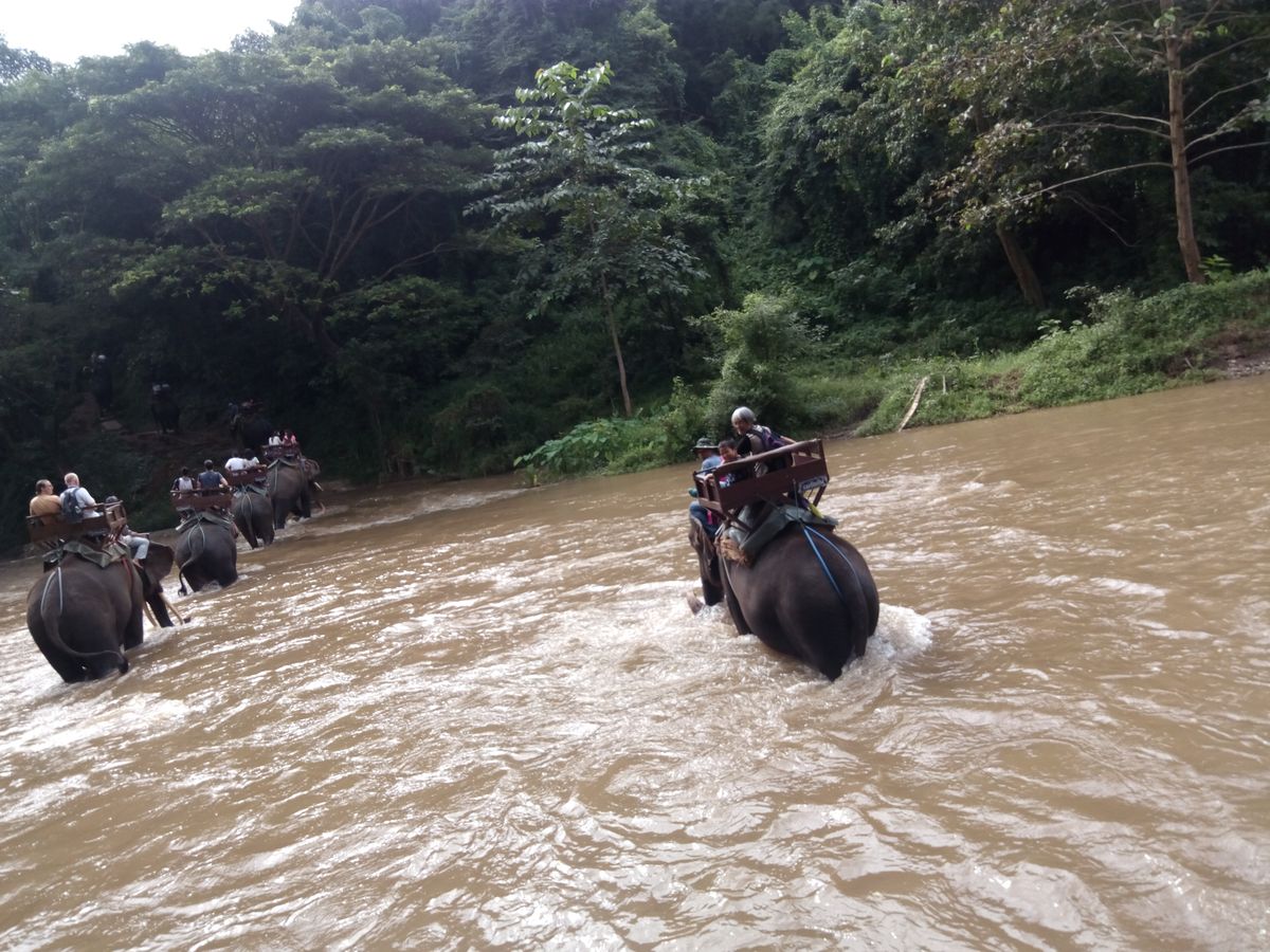 象乗りでは、川の中をざぶざぶと渡り、迫力満点でした。天候に合わせて、プランを変更していただき良かったです。雨上がりの筏下りでしたが、暑くなくてよかったです。炎天下の時は大変かも・・・。首長族の村では、日本の昔の田園風景が見られました。
