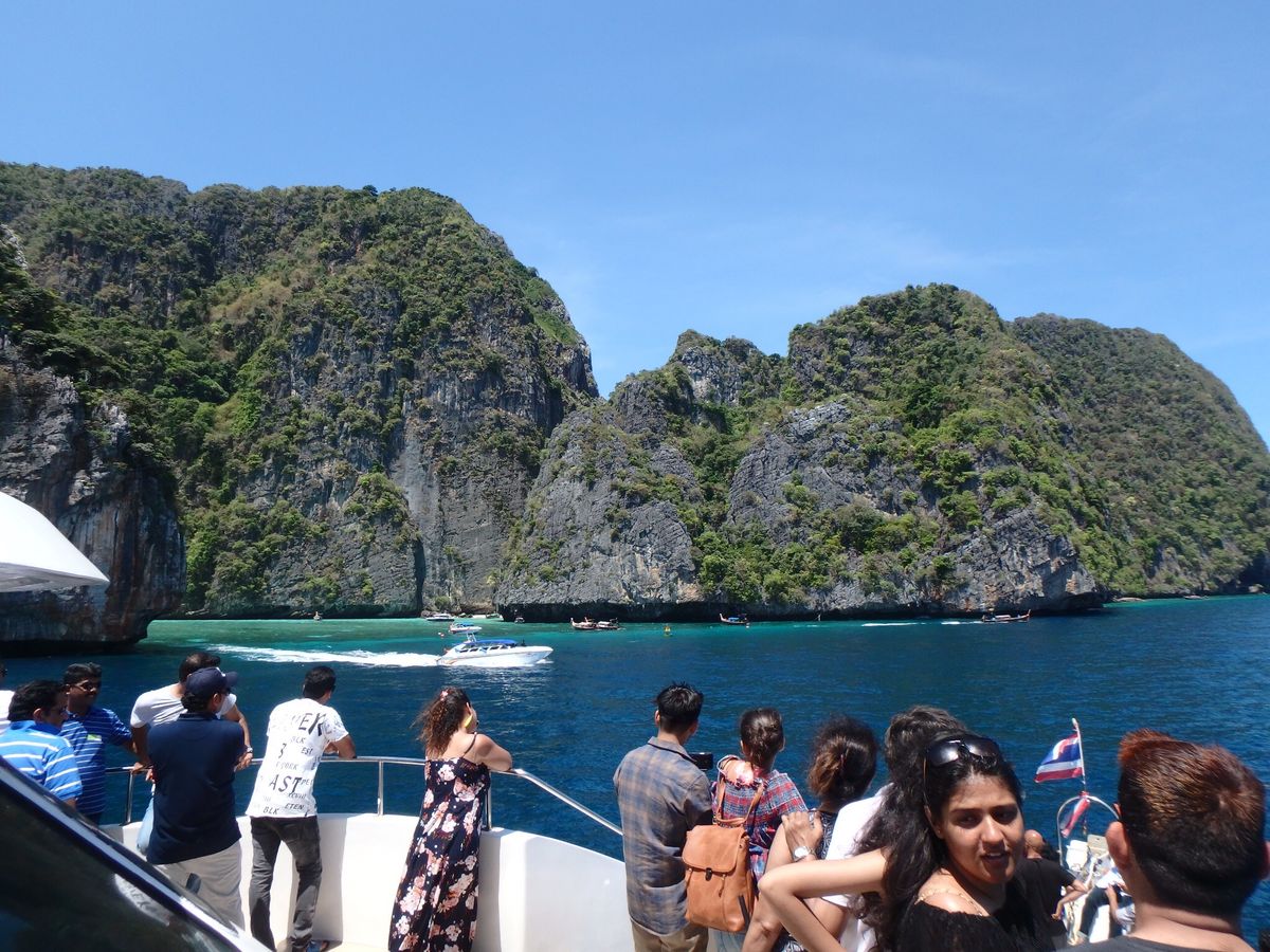 ピピ島まで大型の船で1時間半から2時間くらい、わかってはいたのですが、ちょっと遠すぎました。現地に着いても島の周りを船から見るだけで、上陸して、ピピ島内を観光する時間がほとんどなく、昼食を食べに島の中に行っただけといった感じでした。楽しみにしていたシュノーケルもほとんど時間がなく、スケジュールがつまってるからか、急かされる中で少し遊べたくらいでした。船上からの入水で、深い場所からのスタートなので、不慣れな人は最初は怖いかもしれません。
