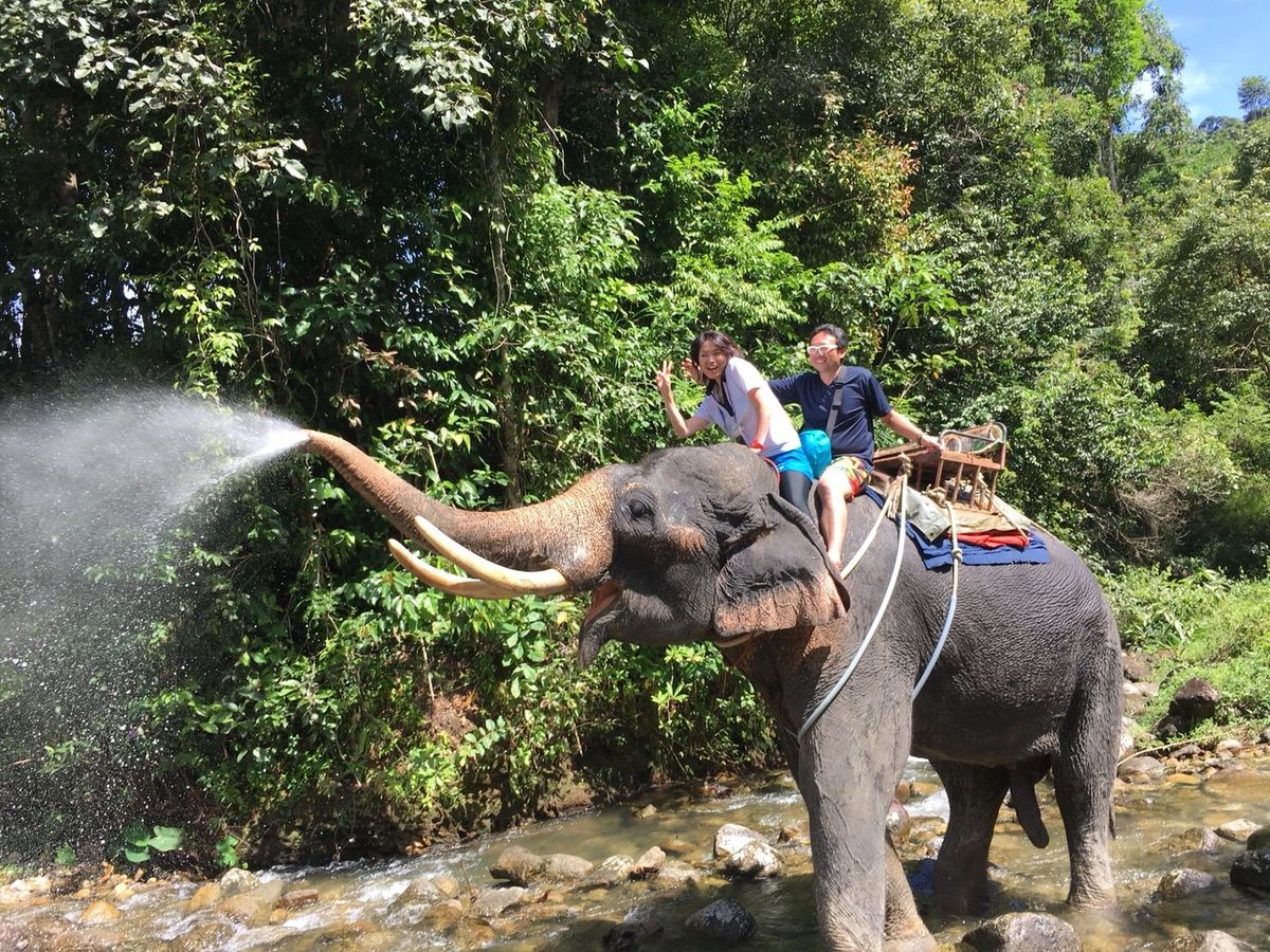 寺院を観た後、ターザンから始まり、ラフティング、象乗り、一日中アクティブに遊び、大満足でした。象使いのおじさんは、象から降りて、私たちのスマホで写真や動画を撮ってくれました。写真を買わないと象に乗っている姿は手に入らないと思っていたので嬉しかったです。