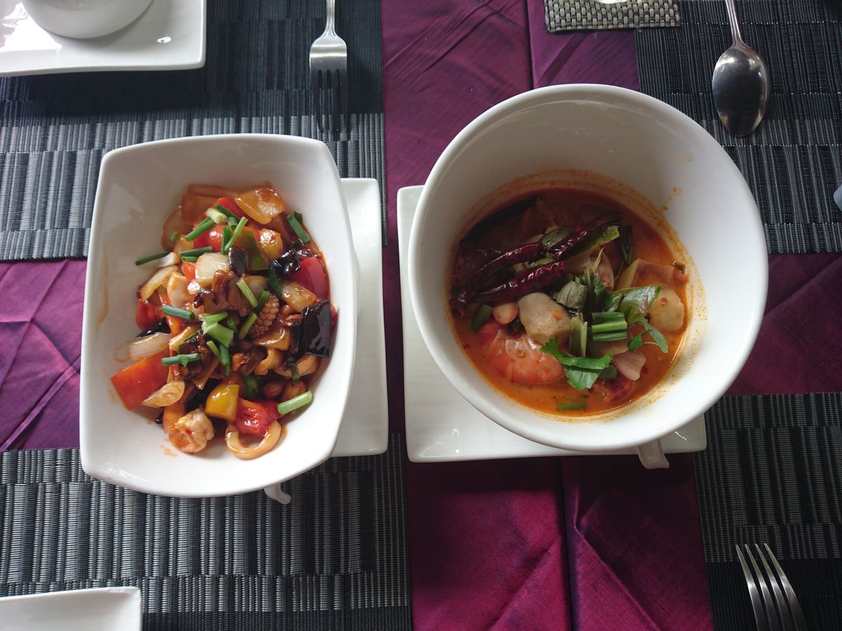 昼食のホテルビュッフェは、とてもおいしいタイ料理が勢ぞろいで大満足でした。