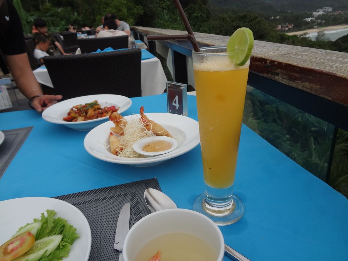 この季節は雨季で、夕陽はどうかなと思っていましたが、何とか雲の間から夕陽を見ることができました。食事をはじめると雨が降り出してきてしまい、夕陽を見ながらの食事とはなりませんでしたが、十分楽しめました。