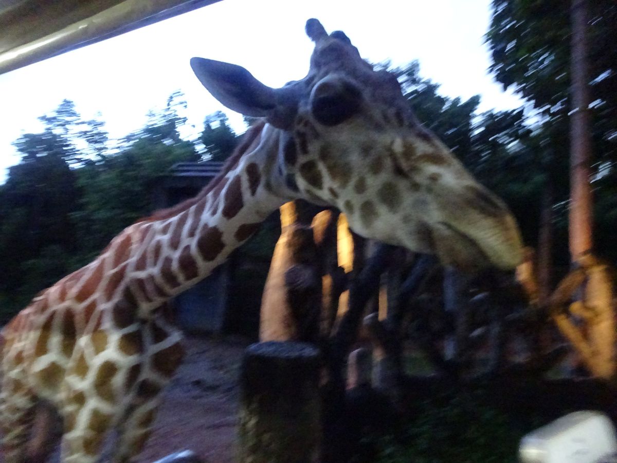 園内に入ってトラムに乗って進んで行くと、キリンやシマウマが、ほんとにすぐそばまでわたしたちを覗きにきました。あんなに近くまで来ると思っていなかったので、びっくり。大迫力でした。